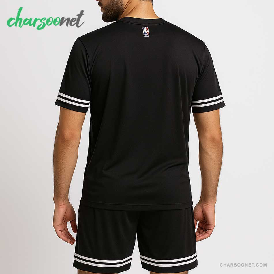 • رنگ:مشکی با حاشیه‌هایسفید در سرآستین‌ها و پایین شورت، که ظاهری کلاسیک و حرفه‌ای دارد.
