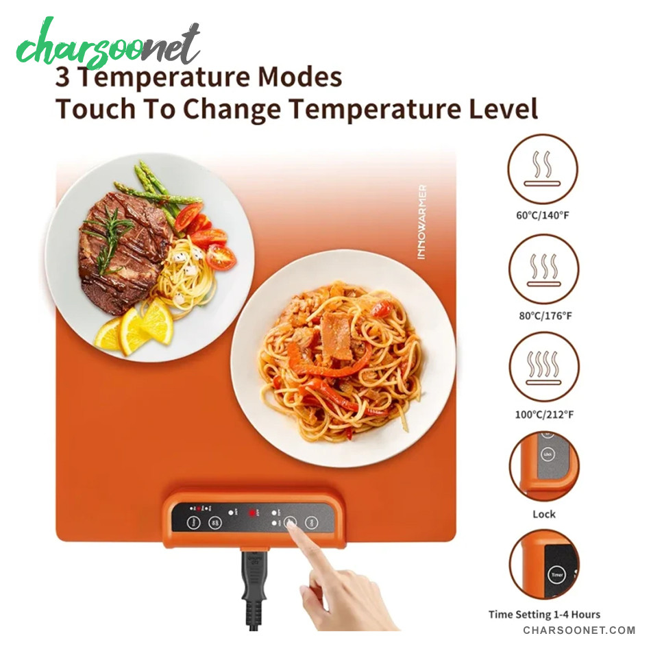 اگر به دنبال گرمکن غذا برقی قابل حمل، سبک و با دوام هستید، مدل CHARSOONET InnoWarmer یکی از بهترین انتخابها برای محل کار، سفر، یا منزل است. این پد حرارتی هوشمند با کنترل لمسی، تایمر دقیق و گرمایش یکنواخت، جایگزینی عالی برای مایکروویو در محیطهایی بدون آشپزخانه محسوب میشود.