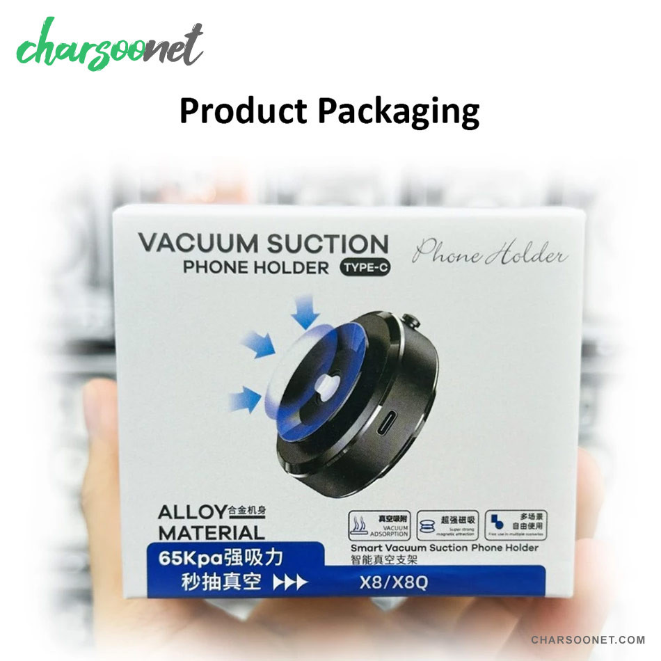 هولدر وکیومی مدل X8 / X8Q یک پایه نگهدارنده هوشمند با سیستم مکش برقی و آهنربای قدرتمند نئودیمیومی است که برای نصب ایمن موبایل روی داشبورد، شیشه خودرو، میز کار و سایر سطوح صاف طراحی شده است. این مدل با بهرهگیری از فناوری ایجاد خلأ (Vacuum Pump) و بدنه آلیاژ فلزی مقاوم، اتصال بسیار پایدار و ضدلرزش را فراهم میکند.