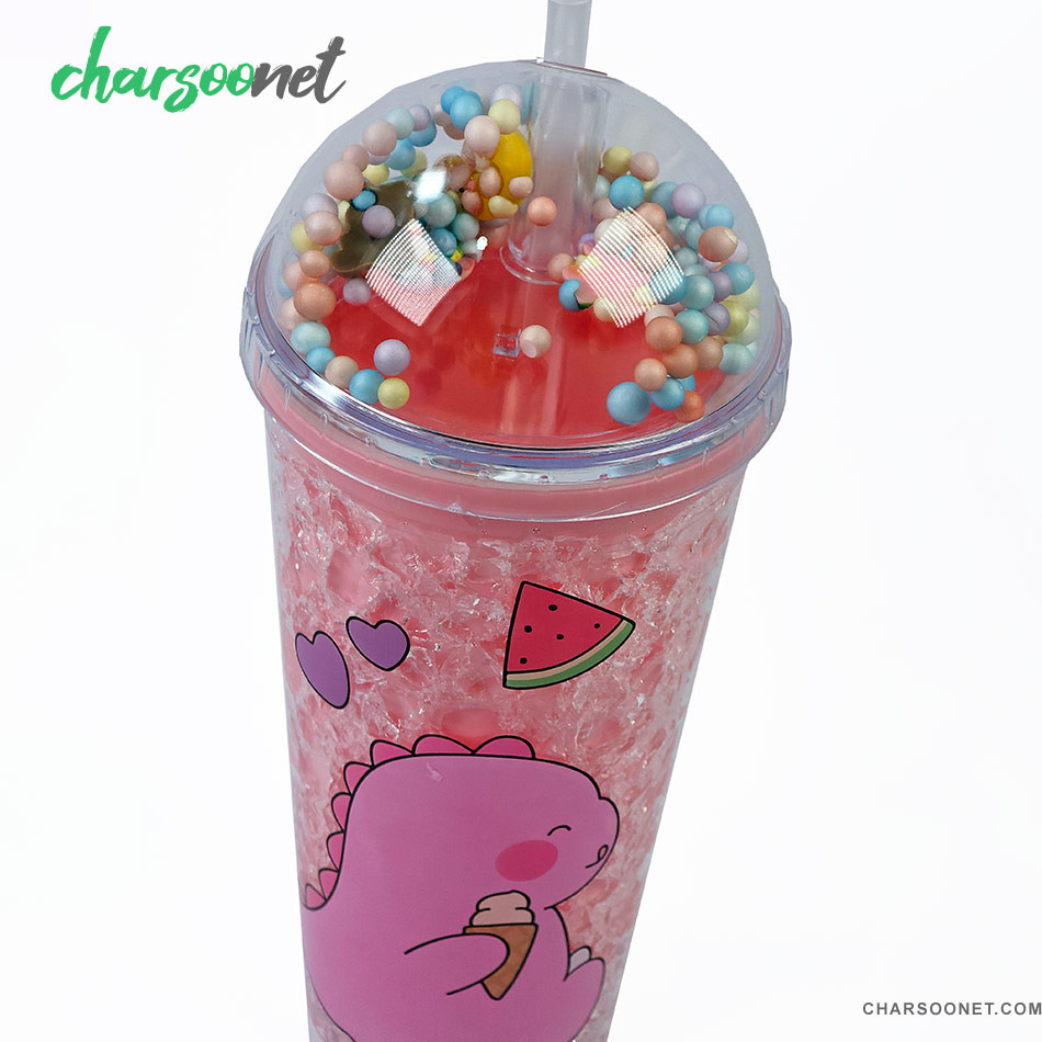 لیوان اسموتی نی دار درب جادویی گنبدی طرح دایناسور چراغ دار