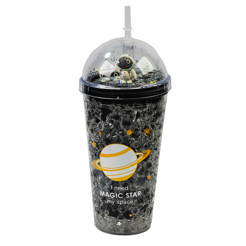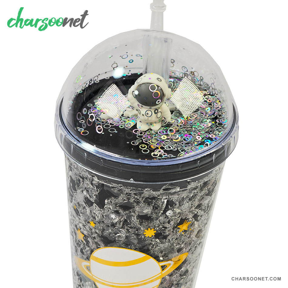 لیوان اسموتی نی دار درب جادویی گنبدی طرح فضانورد چراغ دار