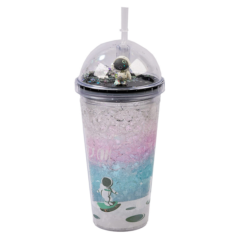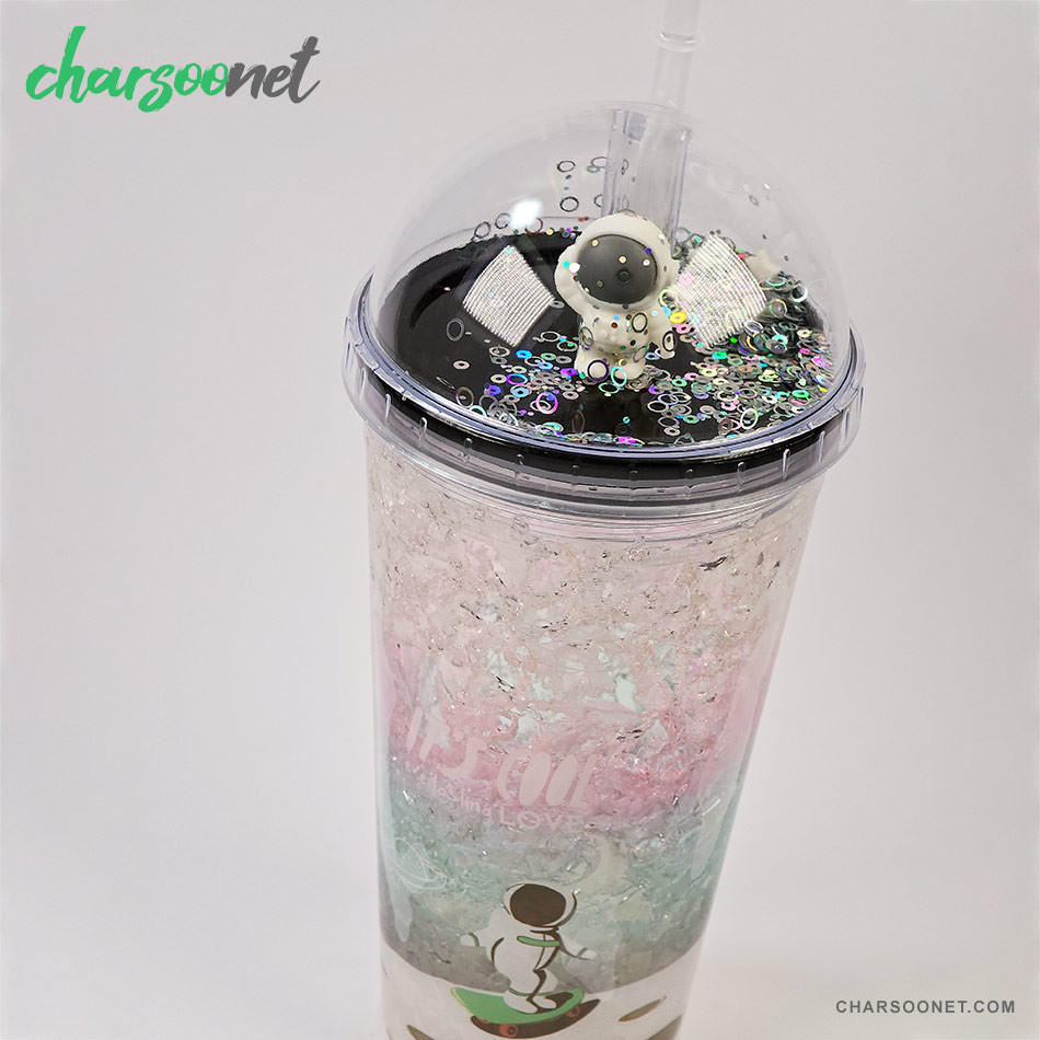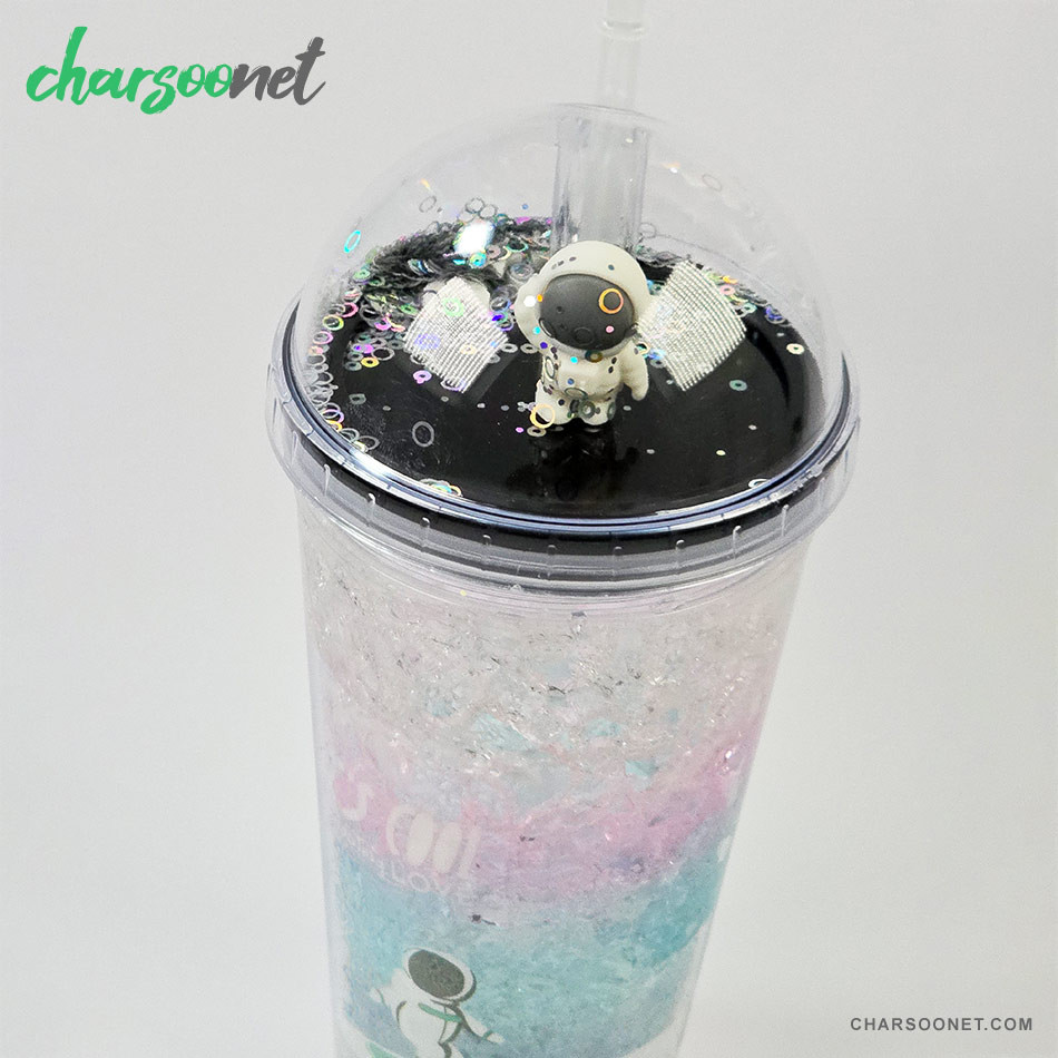 لیوان اسموتی نی دار درب جادویی گنبدی طرح فضانورد چراغ دار
