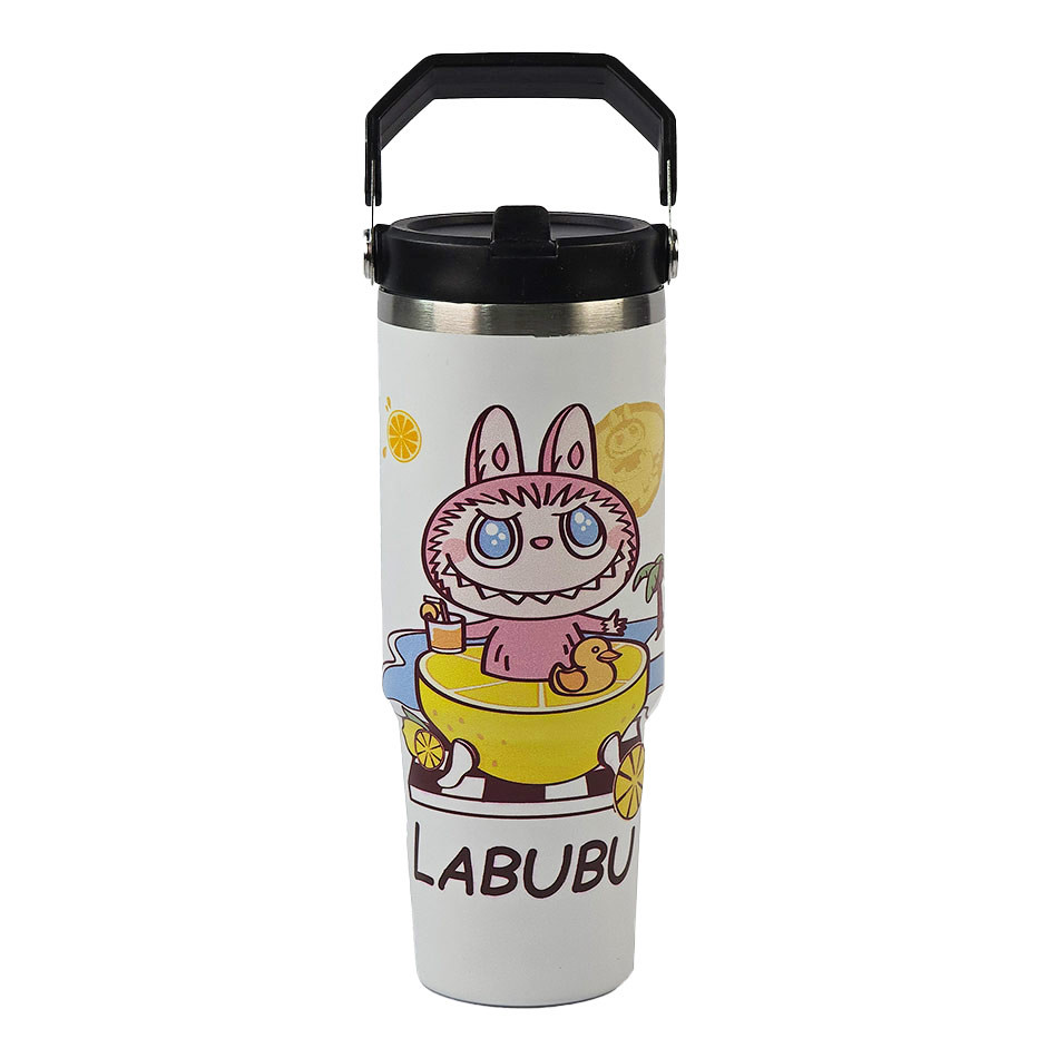 تراول ماگ استیل 900 میلی لیتری نی دار Stay Chill طرح لبوبو