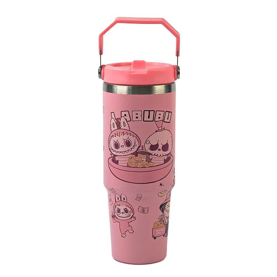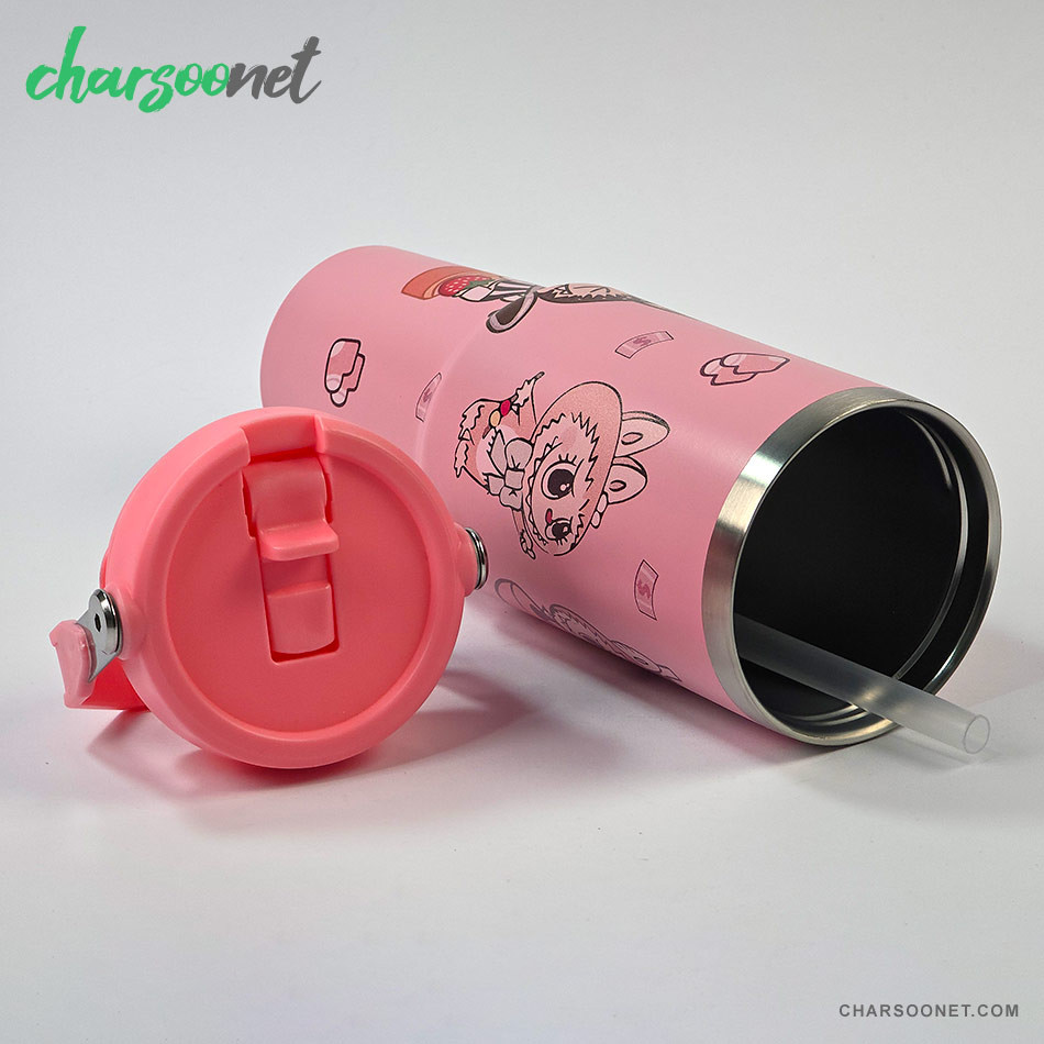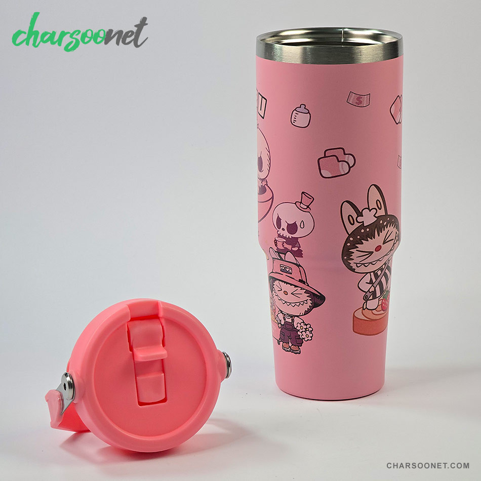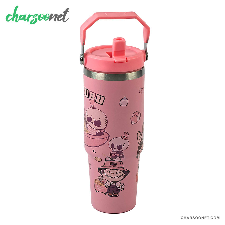 تراول ماگ استیل 900 میلی لیتری نی دار Stay Chill طرح لبوبو