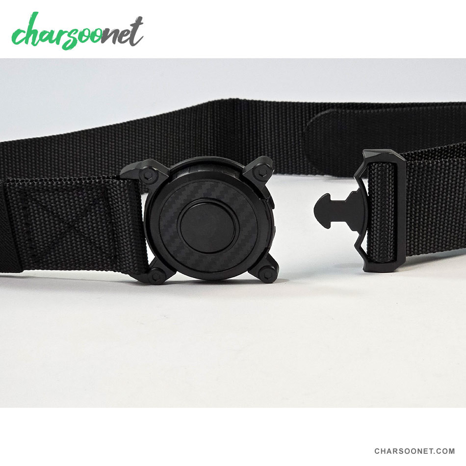 - 🔘 سگک فلزی گرد با قفل دکمهای: طراحی خاص و مکانیزم فشاری که باز و بسته شدن کمربند را سریع، ایمن و راحت میکند.