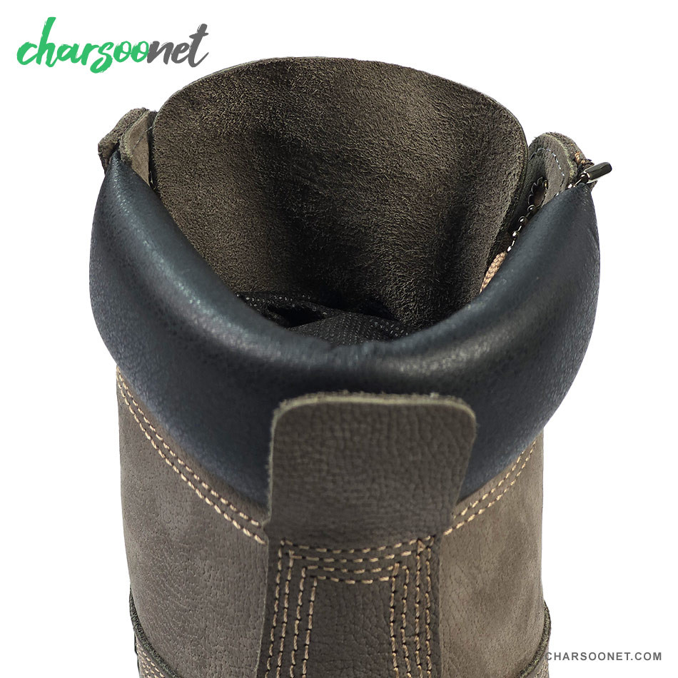 رویه از چرم نوبوک ضدآب ساخته شده که علاوه بر ظاهر شیک و حرفهای، مقاومت بسیار بالایی در برابر سایش و شرایط سخت محیطی دارد. هر جفت بوت با استانداردهای دقیق کارخانه Timberland تولید و تست میشود.