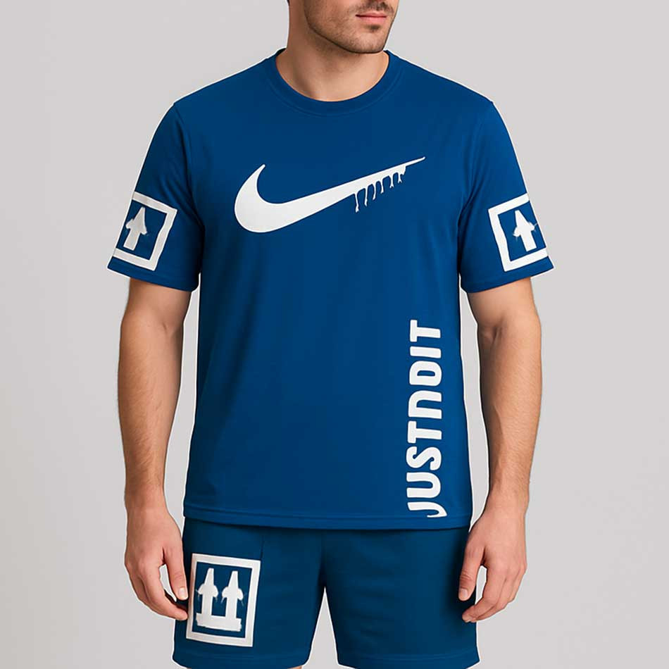 تیشرت وشورت ورزشی طرح نایک ست ورزشی حرفه‌ای است که معمولاً برای ورزش‌هایی مثل بسکتبال، تمرینات بدنسازی، یا فعالیت‌های عمومی ورزشی استفاده می‌شود