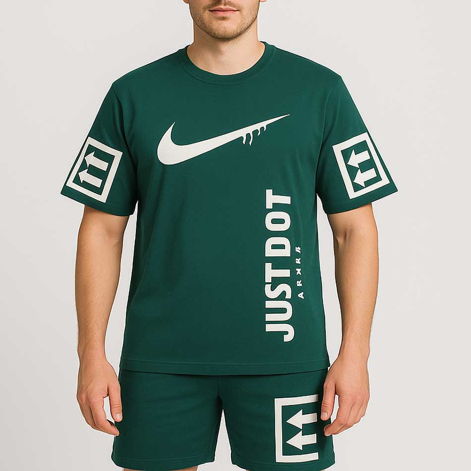 تیشرت وشورت ورزشی طرح نایک ست ورزشی حرفه‌ای است که معمولاً برای ورزش‌هایی مثل بسکتبال، تمرینات بدنسازی، یا فعالیت‌های عمومی ورزشی استفاده می‌شود