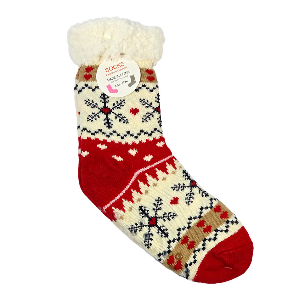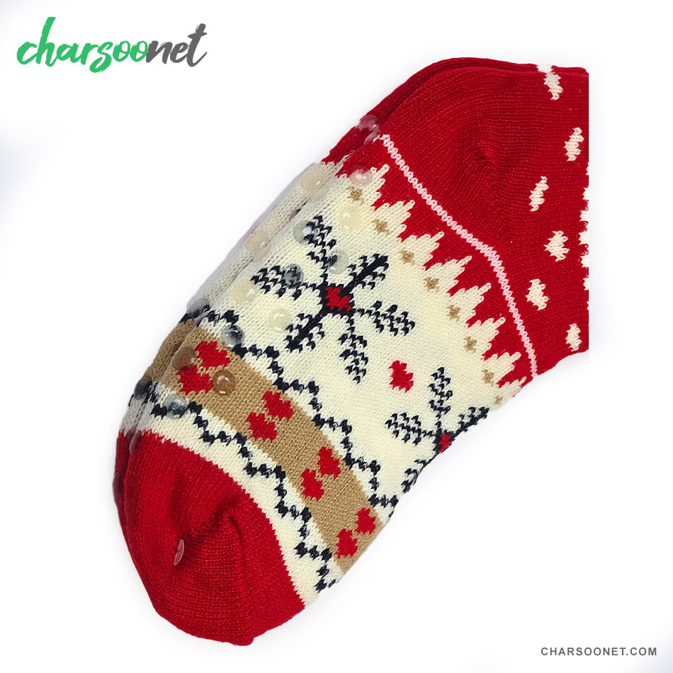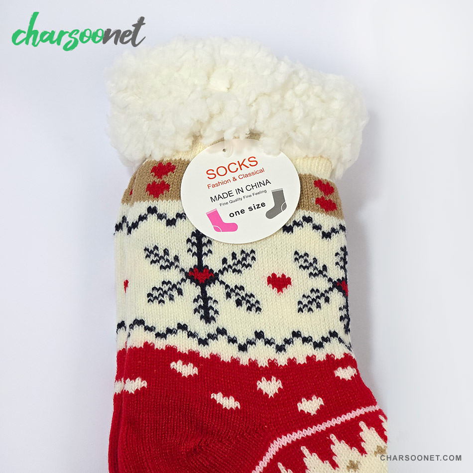 جوراب پاپوش کریسمسی استپ دار داخل خز فری سایز طرح دانه برف