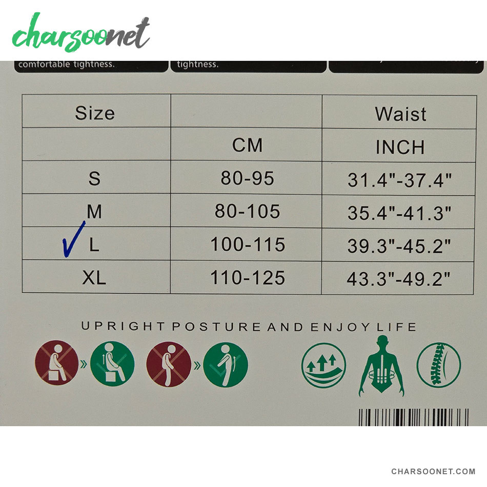 • چطور سایز مناسب را انتخاب کنم؟ دور کمر خود را اندازه‌گیری کرده و با جدول سایز مقایسه کنید