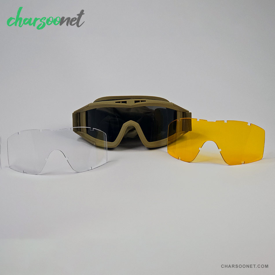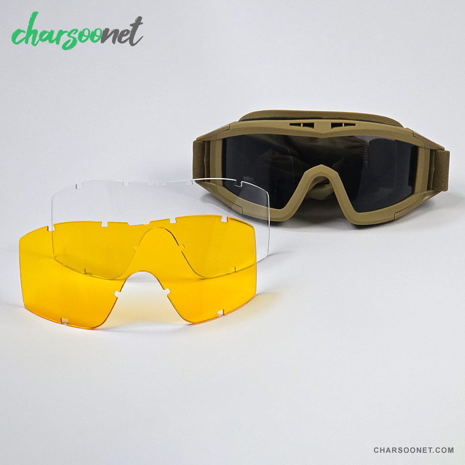 خرید عینک تاکتیکال حرفه‌ای با لنزهای قابل تعویض – مناسب تیراندازی، کوهنوردی و آفرود و فعالیت‌های نظامی