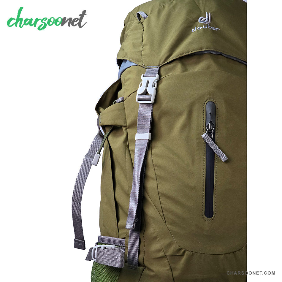 نکته مهم: زیپ گسترشدهنده در بالای کوله قرار دارد و با یک حرکت ساده، ۱۰ لیتر فضای اضافی برای کیسهخواب، لباس یا تجهیزات اضافه ایجاد میکند.