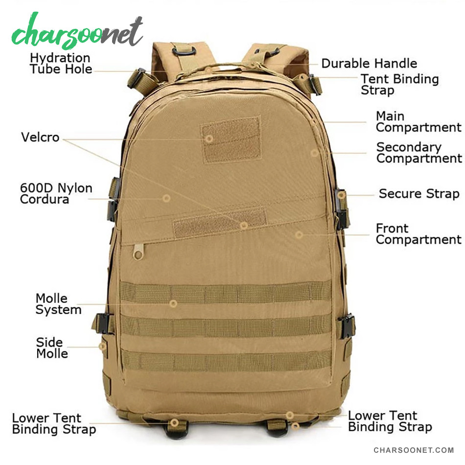 کوله پشتی تاکتیکال ۳۵ لیتری | مقاوم، جادار و مناسب سفر و طبیعتگردی