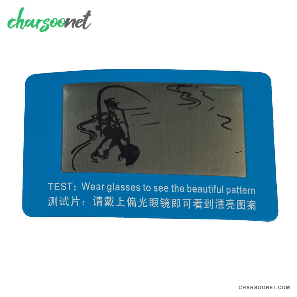 همراه این محصول کارت تست پلاریزه ارائه میشود که با قرار دادن عینک روی آن، عملکرد واقعی لنز پلاریزه را مشاهده خواهید کرد؛ نشانهای از اصل بودن و کیفیت بالای لنزها.
