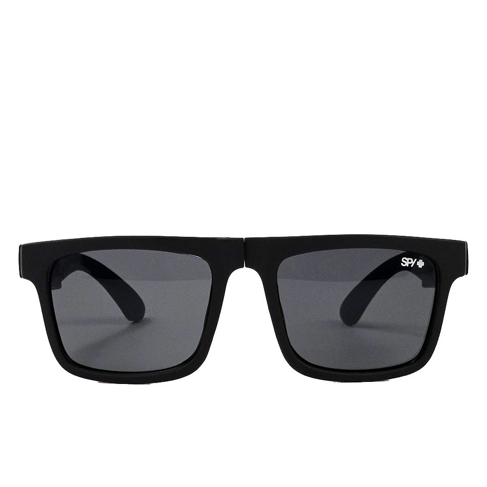 عینک آفتابی اسپای پلاس SPY+ Fold – فریم مشکی مات، لوگو قرمز و لنز Happy Grey