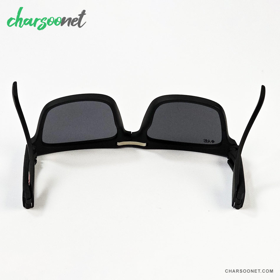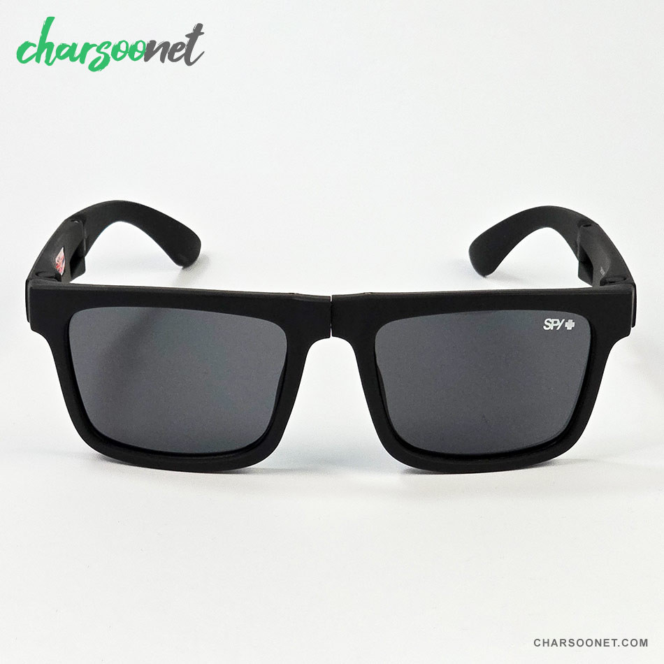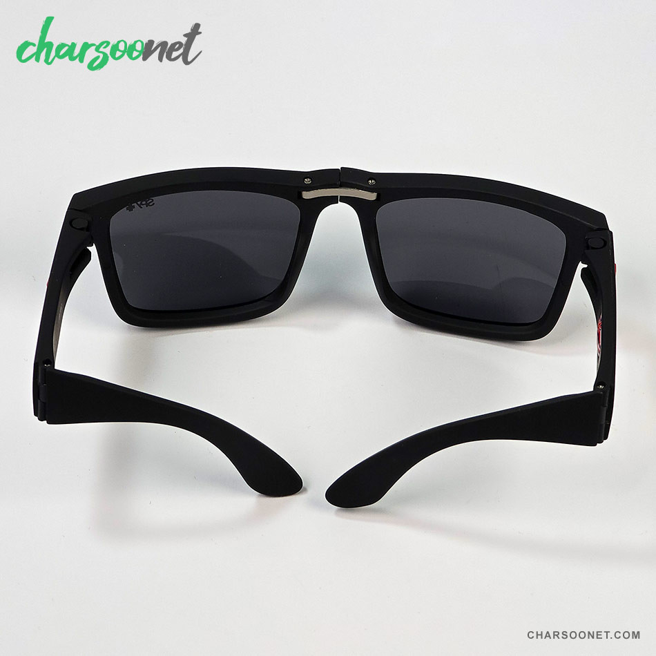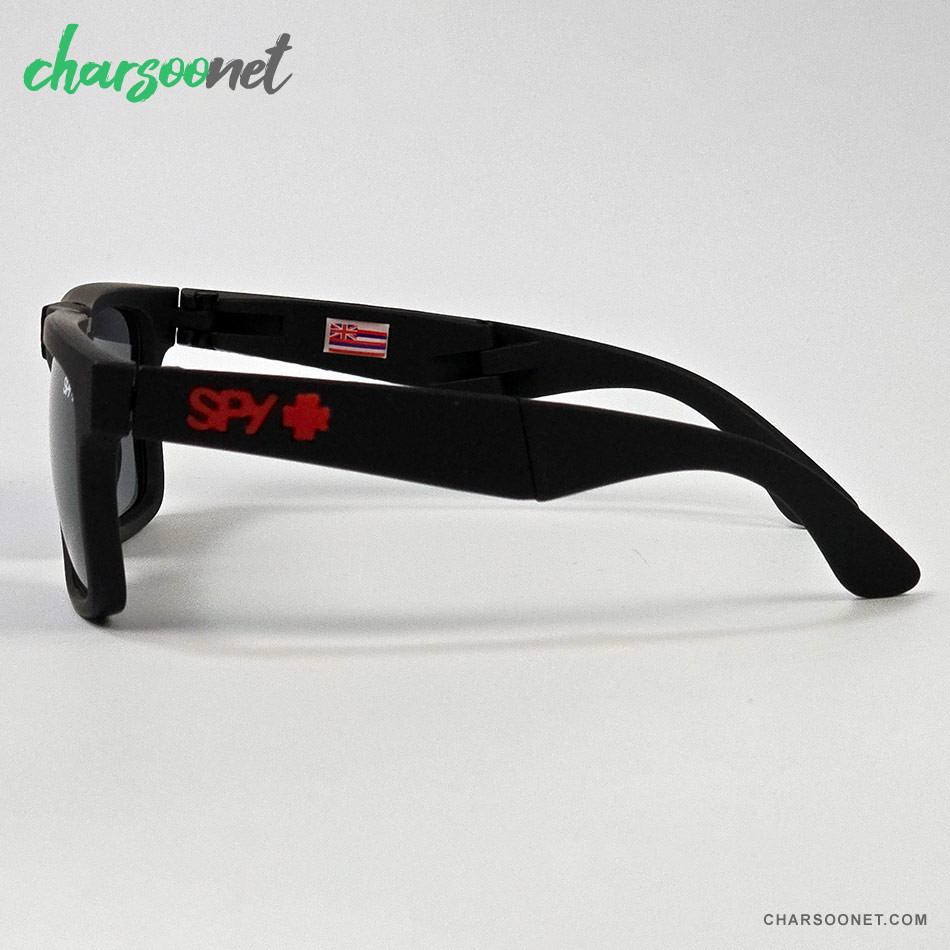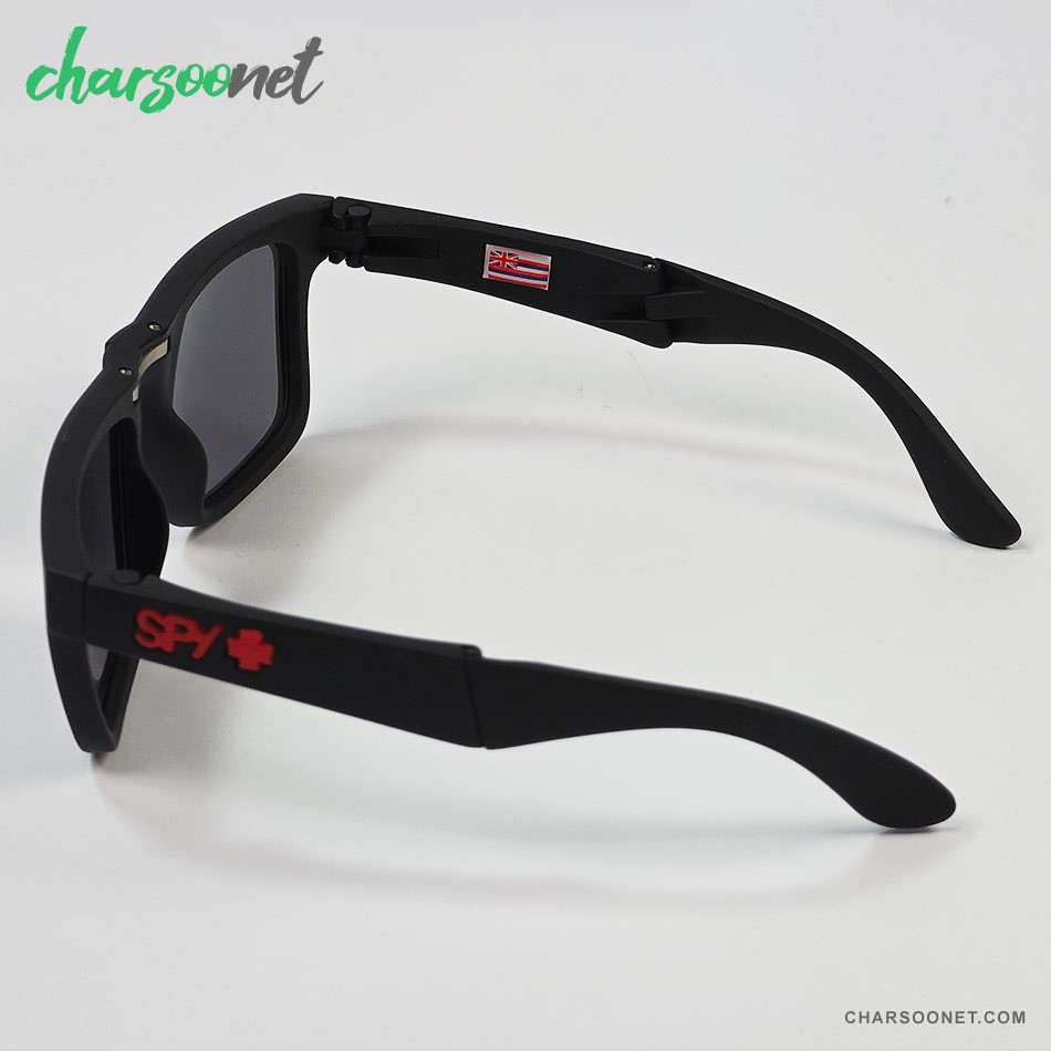 عینک تاشوی آفتابی اسپای پلاس SPY+ Fold فریم مشکی مات، لوگو قرمز و لنز Happy Grey