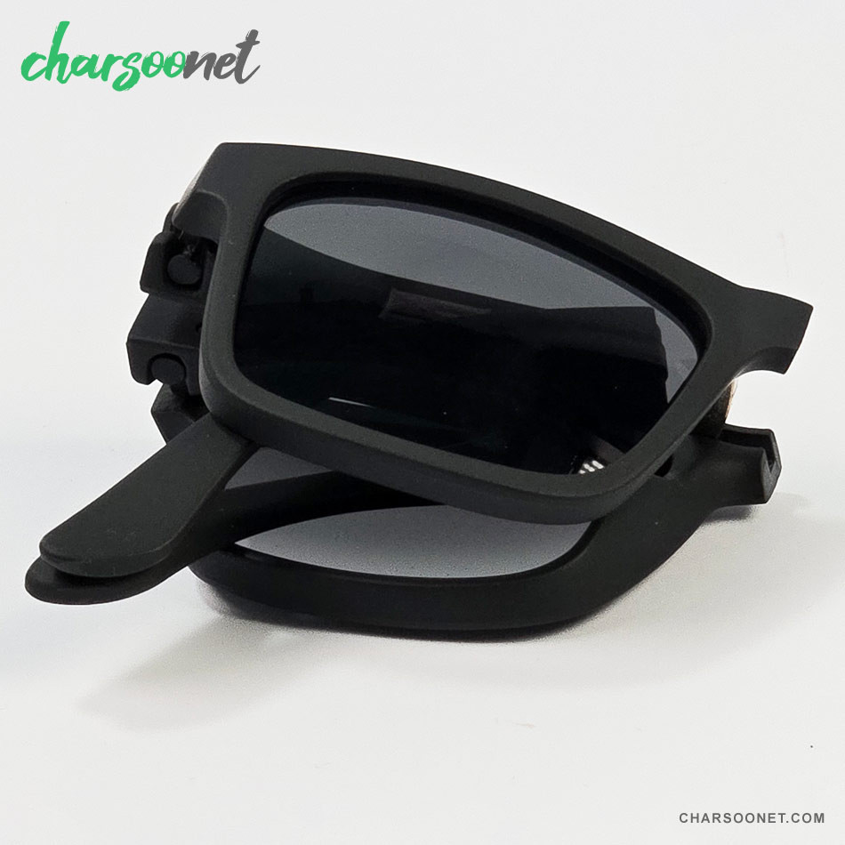 عینک تاشوی آفتابی اسپای پلاس SPY+ Fold فریم مشکی مات، لوگو سبز و لنز Happy Grey