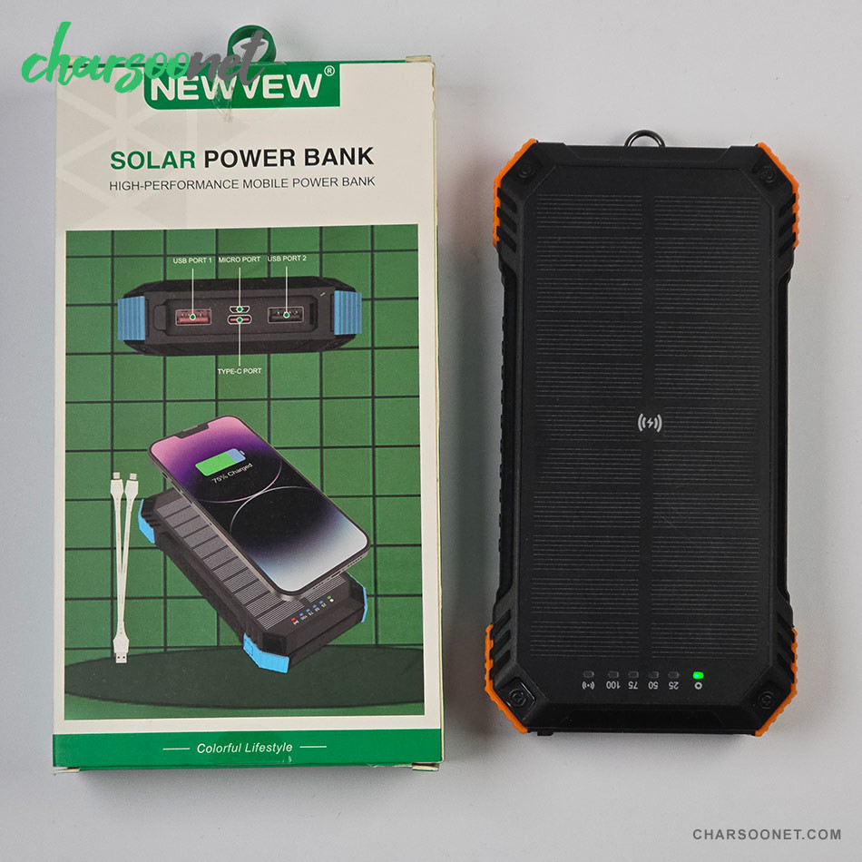 پاوربانک خورشیدی 20000 میلی آمپر Newvew