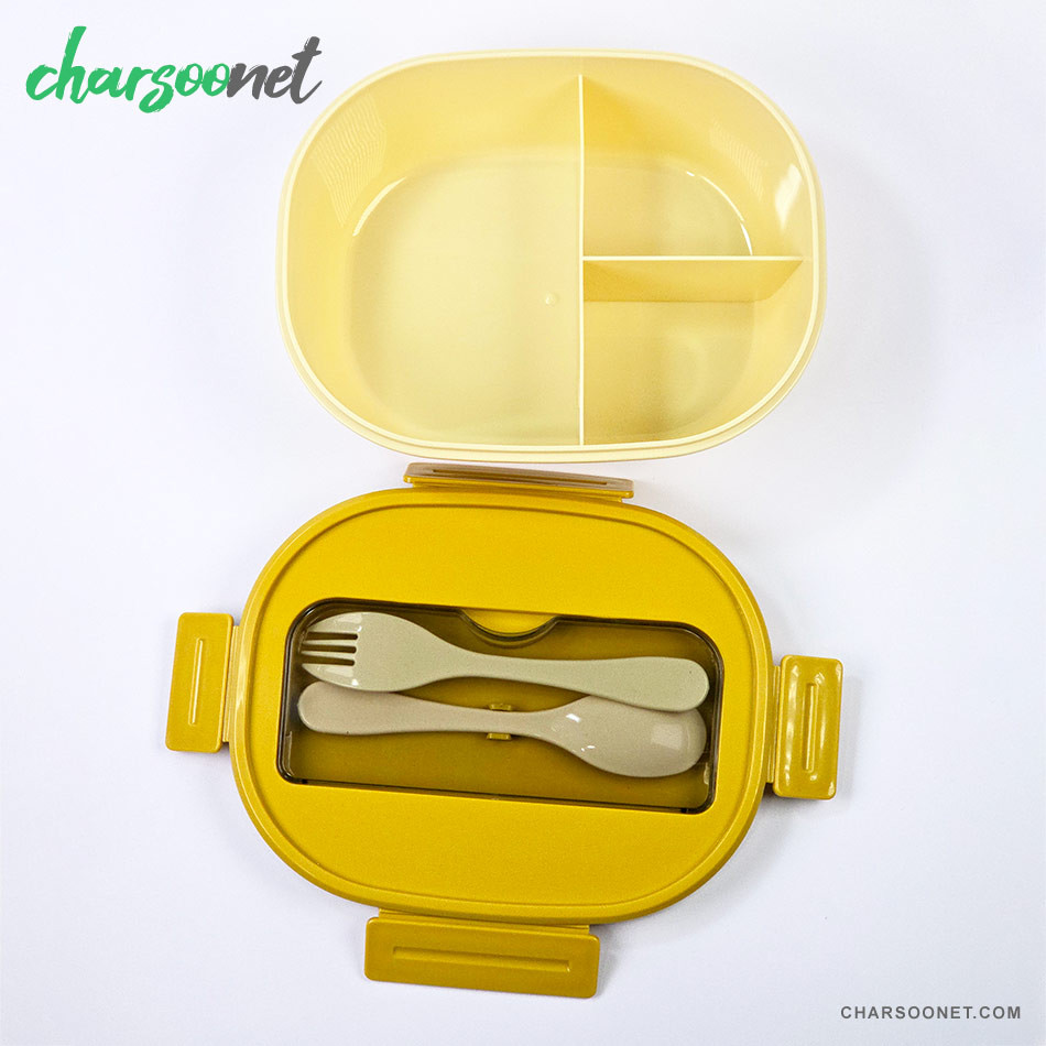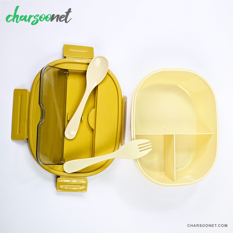 - تقسیمبندی دوبخشی: دارای دو محفظه جداگانه برای نگهداری برنج، خورشت، سالاد یا میانوعدهها بدون تداخل طعم