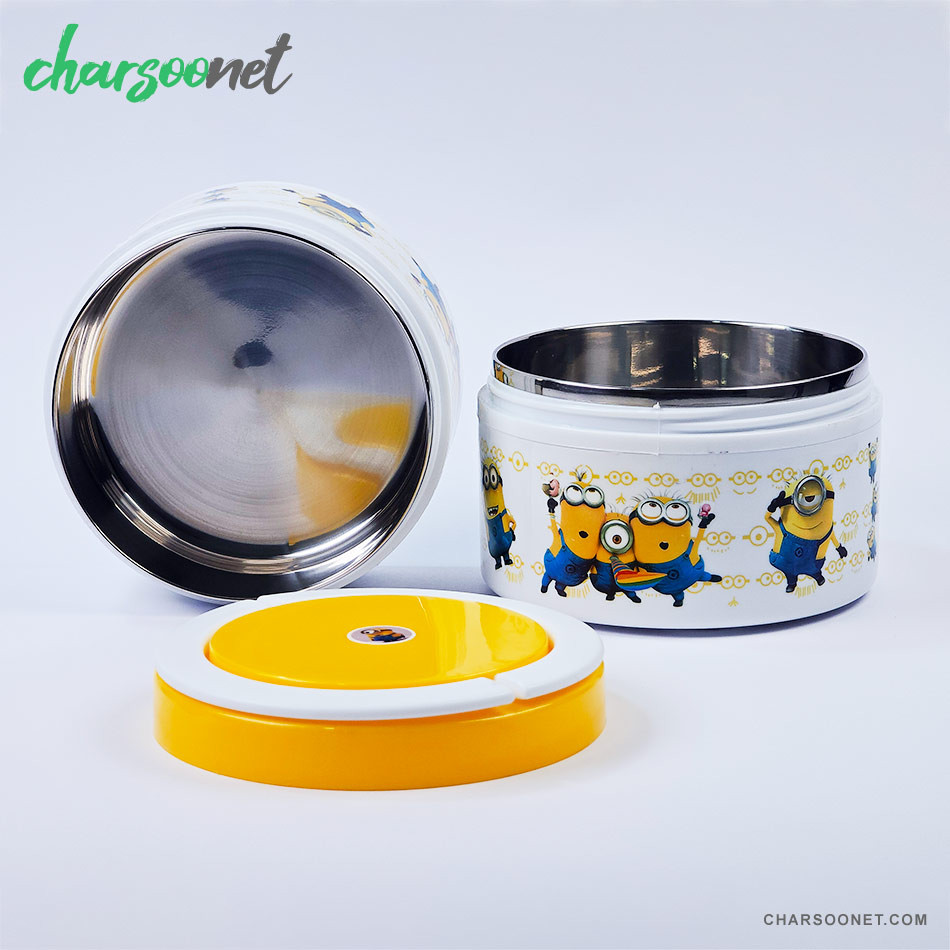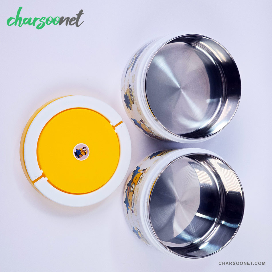 ظرف غذای کودک دو طبقه داخل استیل طرح مینیونها
