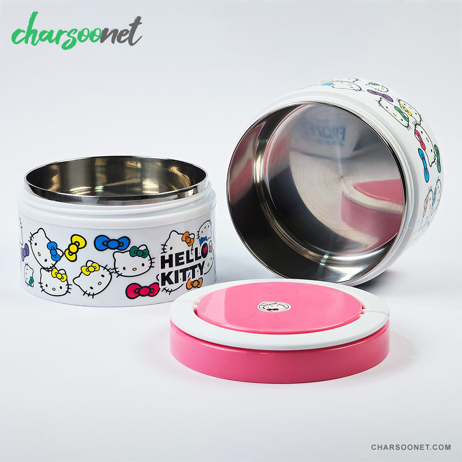 ظرف غذای کودک دو طبقه داخل استیل طرح کیتی