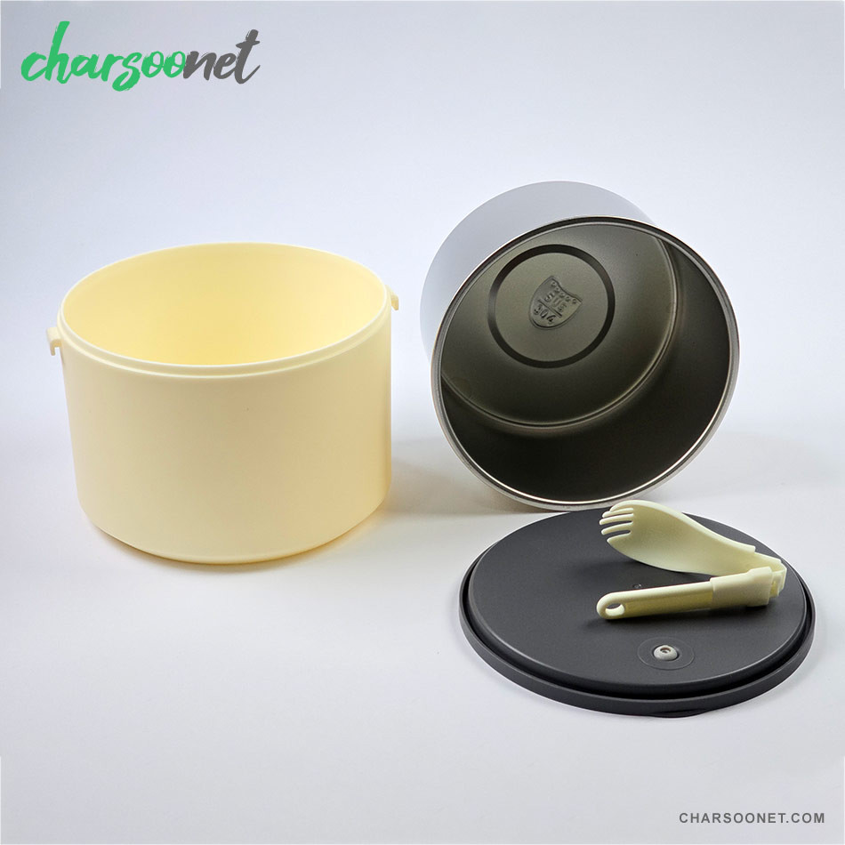 - درب ضد نشت و دارای سوپاپ بخار: از نشت مایعات جلوگیری کرده و غذا را تازه و خوشطعم نگه میدارد.