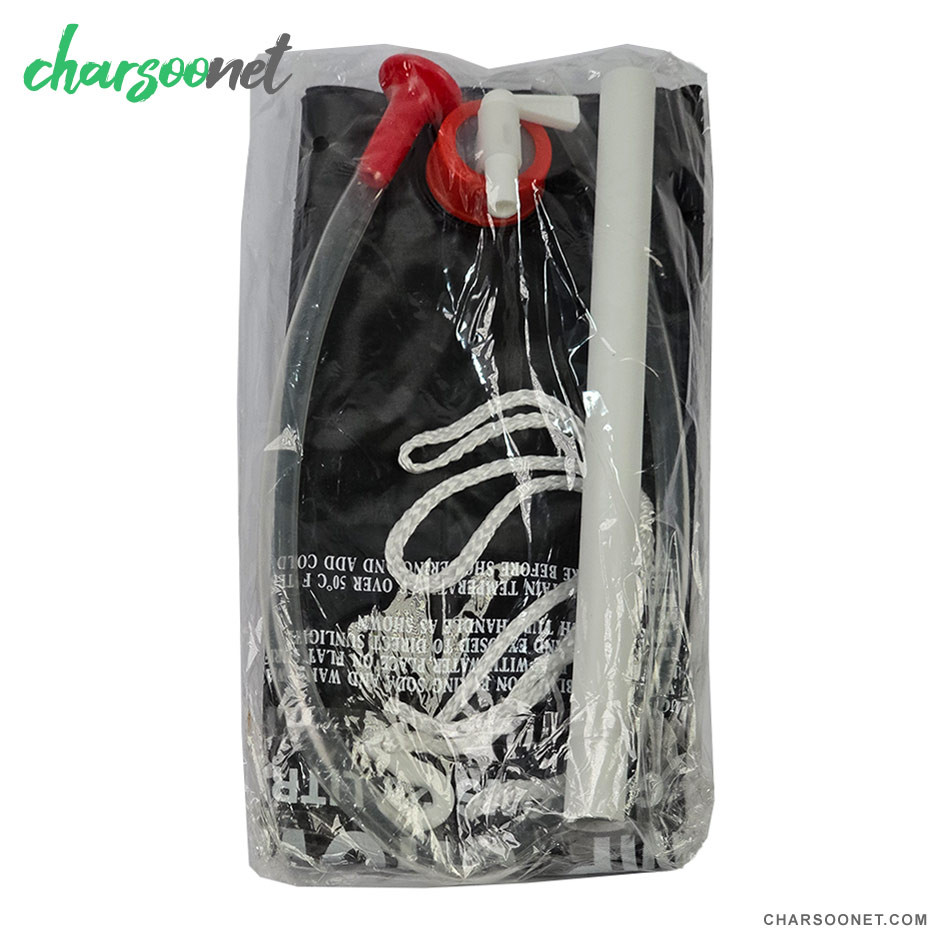 - پر کردن: کیسه را با آب (ترجیحاً گرم) پر کنید تا به ظرفیت 20 لیتر برسد. از قرار دادن در معرض نور مستقیم خورشید برای گرم شدن آب استفاده کنید.