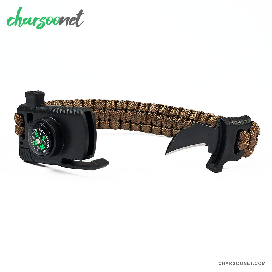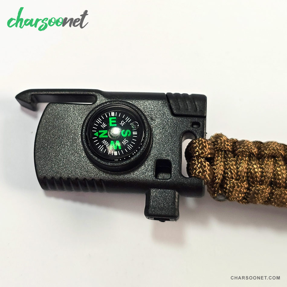 دستبند پاراکورد تاکتیکال با قطب‌نما و چاقوی مخفی و آتش زنه | ابزار بقا چندکاره