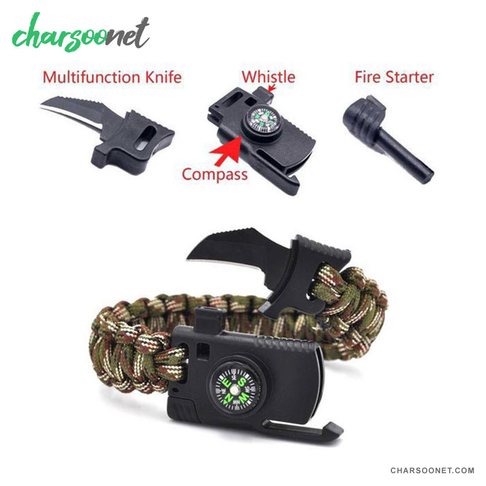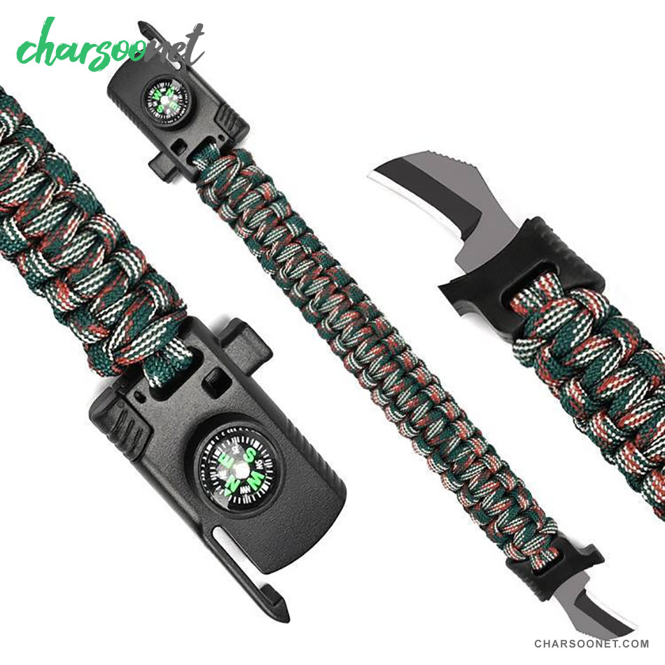 دستبند پاراکورد تاکتیکال همراه قطب نما و چاقوی مخفی و آتش زنه