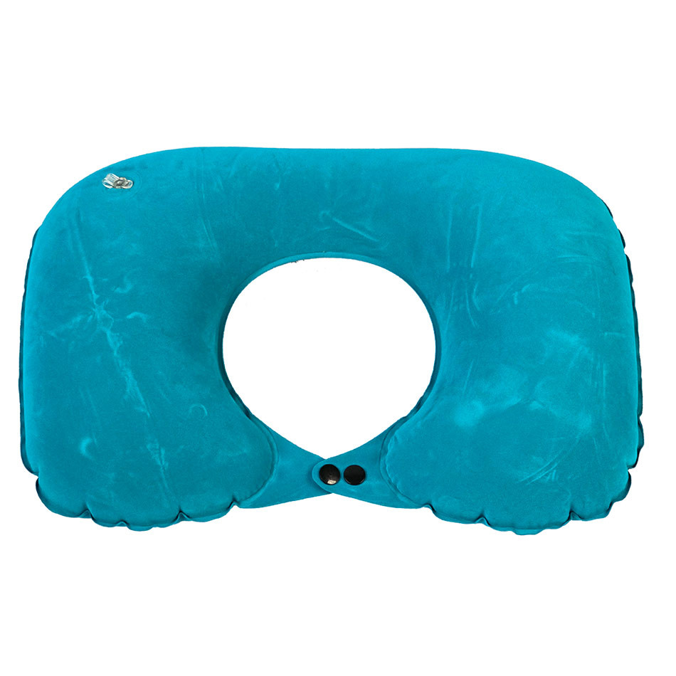 این بالش بادی مسافرتی با رنگ سبزآبی و بافتی نرم و ضد حساسیت ساخته شده است. سوراخ دایره‌ای بزرگ وسط بالش (قطر حدود ۱۰ سانتی‌متر) برای قرارگیری راحت گوش طراحی شده تا هنگام استفاده از هدفون یا گوشی موبایل، فشاری به گوش وارد نشود. همین ویژگی باعث شده تا این مدل، در میان انواع بالش‌های مسافرتی، محبوبیت ویژه‌ای پیدا کند.