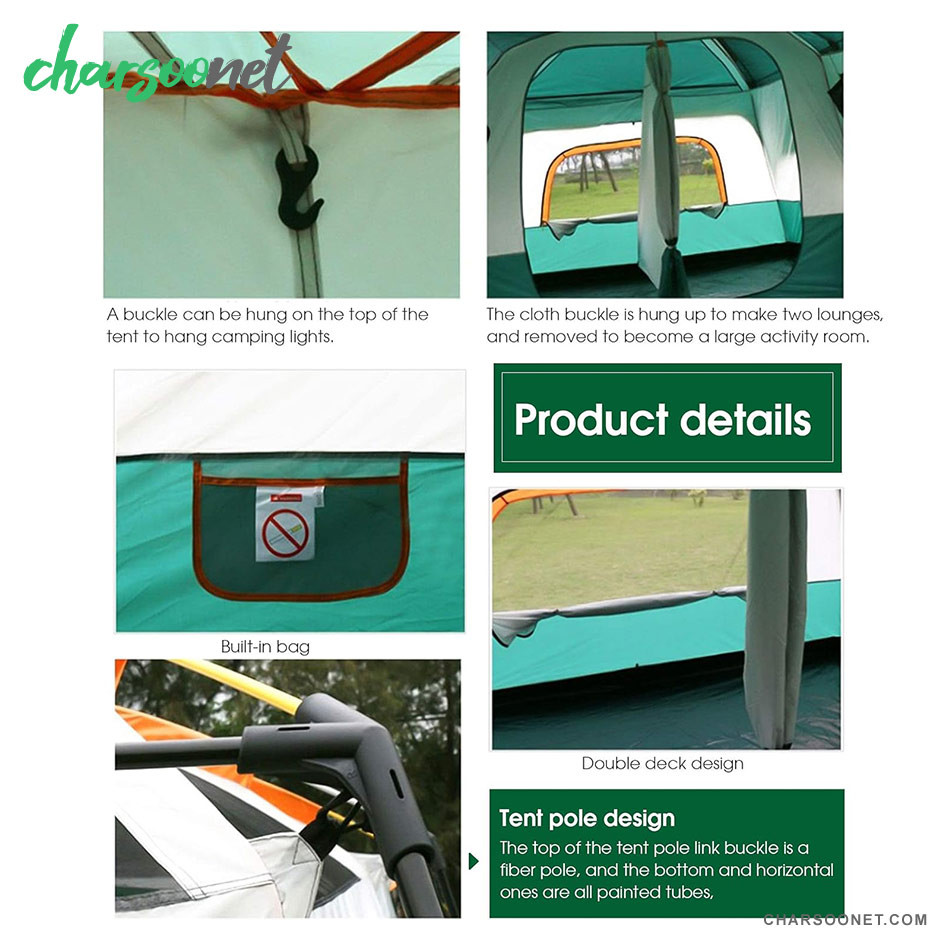 چادر مسافرتی دو خوابه سایبان دار 10نفره وارداتی