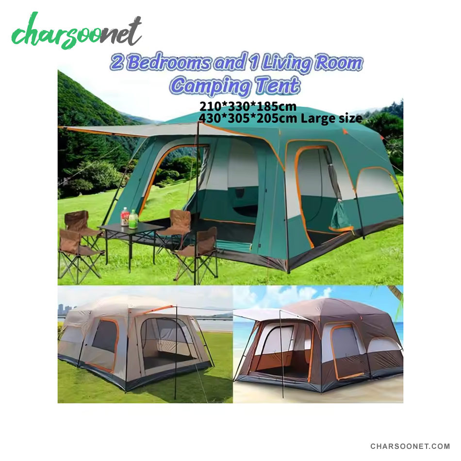 اگر به دنبال یک چادر مقاوم و جادار برای سفرهای کمپینگ، طبیعت‌گردی و پیک‌نیک خانوادگی هستید، چادر کمپینگ چندمنظوره با ابعاد 430×305×205 سانتی‌متر گزینه‌ای ایده‌آل است. این چادر با طراحی مدرن و ساختار مستحکم، راحتی و امنیت شما را در فضای باز تضمین می‌کند.