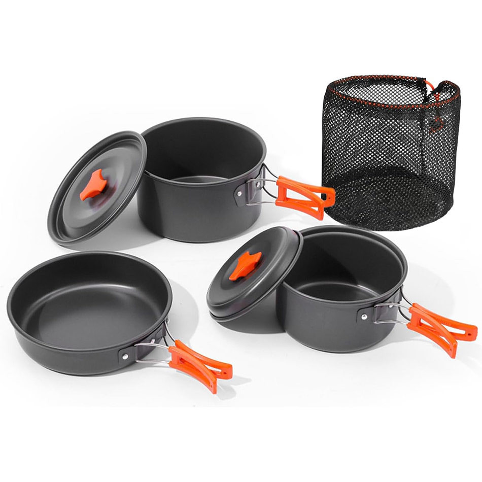 ست ظروف کمپینگ آلومینیومی مدل TZ-300 | سبک، کم‌حجم و کاربردی برای طبیعت‌گردی