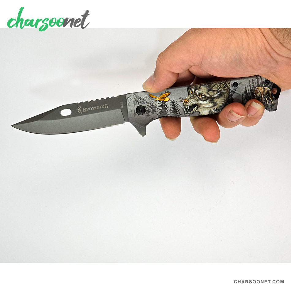 چاقوی تاشو مسافرتی براونینگ طرح گرگ وحشی FA47