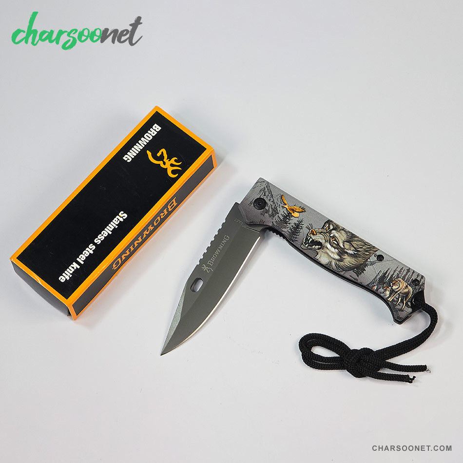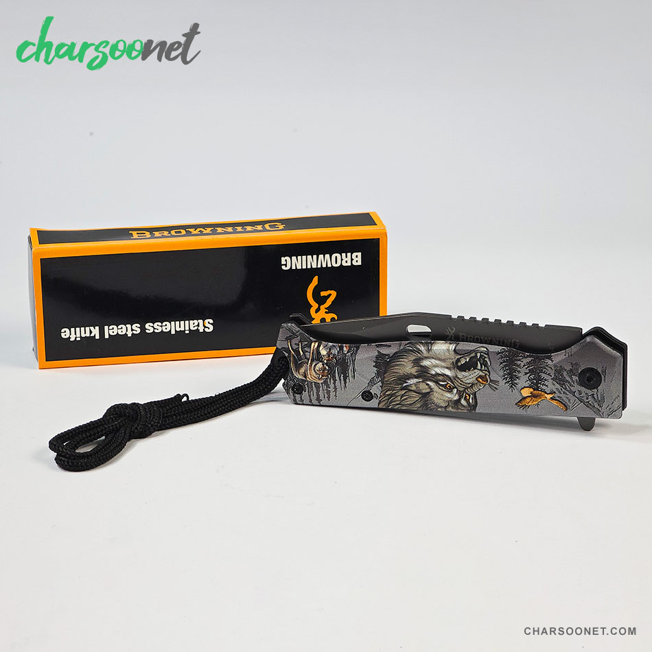 🐺 چاقوی تاشو مسافرتی براونینگ مدل گرگ وحشی | استحکام، زیبایی و عملکرد صحرایی